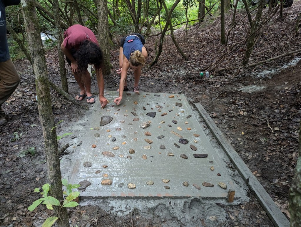 Mat from Chattooga River Lodge emailed some pictures from the concrete pour Thursday evening of the pad there. It looks like your bench is going to be down in the woods next to a creek at a trailhead or something – very secluded and conducive to meditating and contemplating… I would think.
